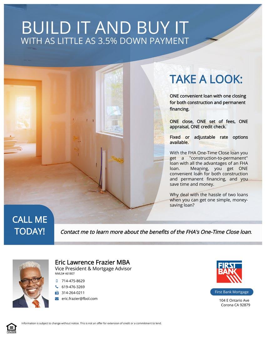 Fixed Rate for SEVEN years % APR**5.77 Promo Rate As low as for the first year % APR*3.99 after As low as % APR*5.50 or Find Freedom in Flexibility. See if a Home Equity Line of Credit is right for you. For big projects or little, a sense of freedom or a sense of security, home renovations or a family getaway, draw on the equity of your home with a Home Equity Line of Credit to have the cash you need when the time is right for you. Eric L. Frazier MBA Vice President and Mortgage Advisor Corona 800-261-1634 - 703 eric.frazier@fbol.com
