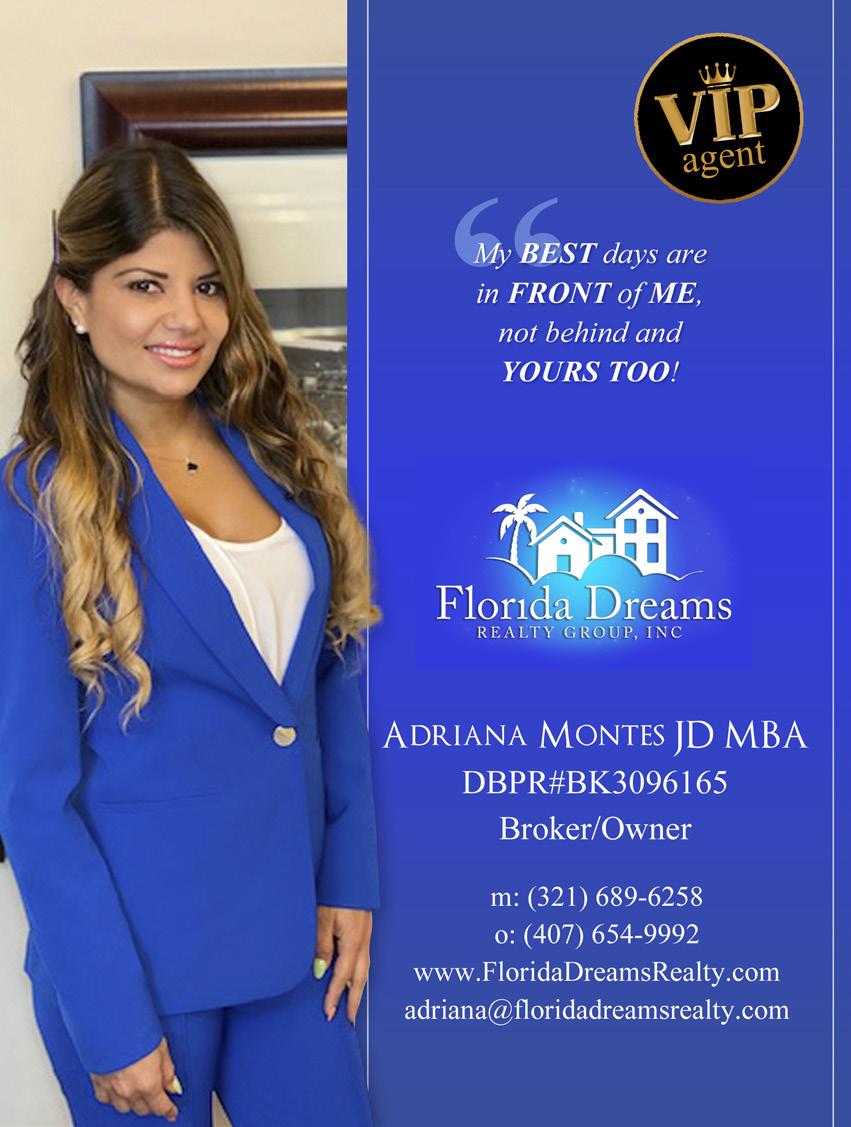 Pg. 37. Looking to Start your Life in Florida? Florida Dreams Realty is here to help you make the transition!, by Adriana Montes.