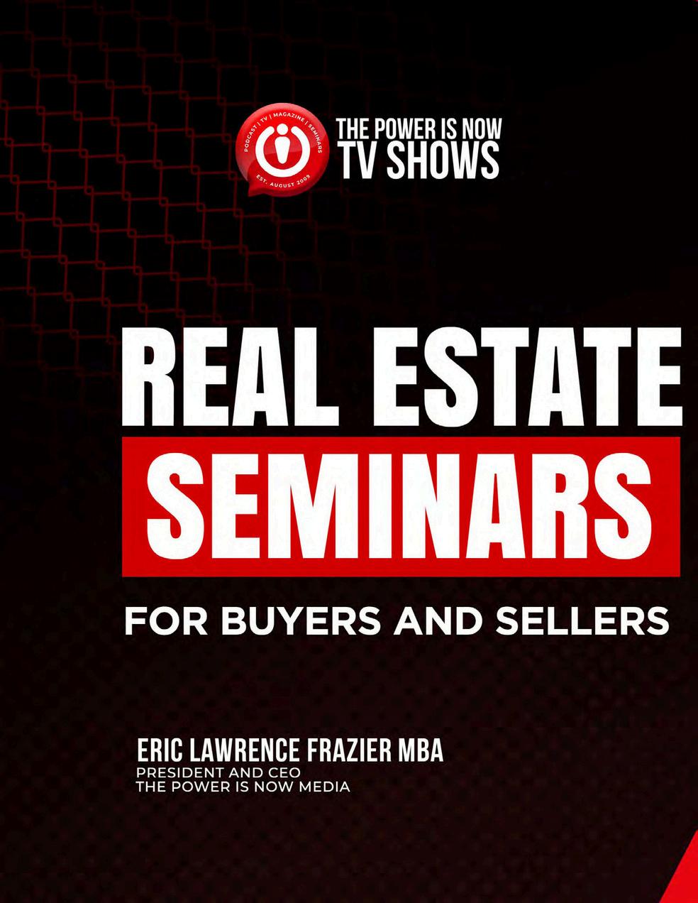 ThePowerIsNow Media is anonline multimedia company foundedin2009by Eric L. Frazier and is headquartered in Riverside, California. We are advocates for homeownership, wealth building and fi- nancial literacy for low to moderate-income and minority communities. We utilize online Radio, online Magazine, online TV and online events to educate and support the American dream of homeownership and financial independence.