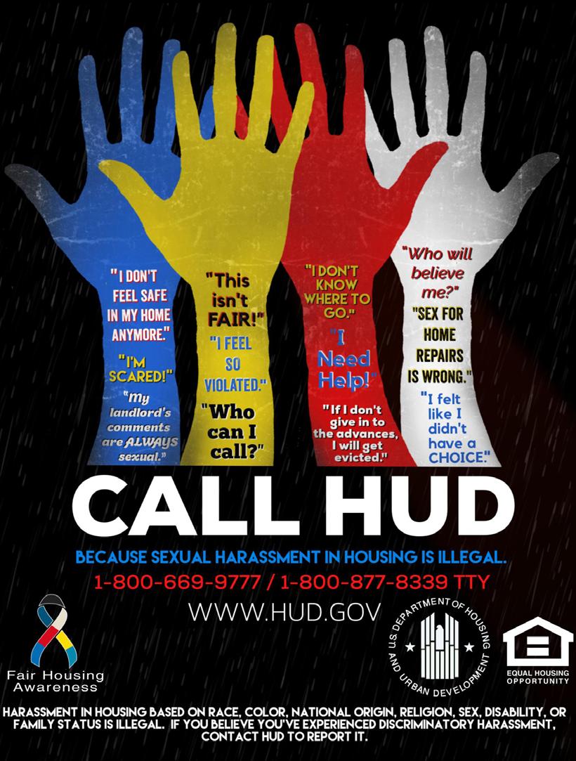 Choosing where you live is a right. Housing discrimination is wrong. Discrimination because of race, color, religion or national origin is illegal. The only way to stop it is for you to report it. Fair Housing Is Your Right. Use It. Visit www.hud.gov/fairhousing or call the HUD Hotline 1-800-669-9777 (English/EspaƱol) 1-800-927-9275 (TTY) SCAN HERE FOR MORE INFO A public service message from the U.S. Department of Housing and Urban Development in partnership with the National Fair Housing Alliance. The federal Fair Housing Act prohibits discrimination because of race, color, religion, national origin, sex, familial status or disability. For more information, visit www.hud.gov/fairhousing.