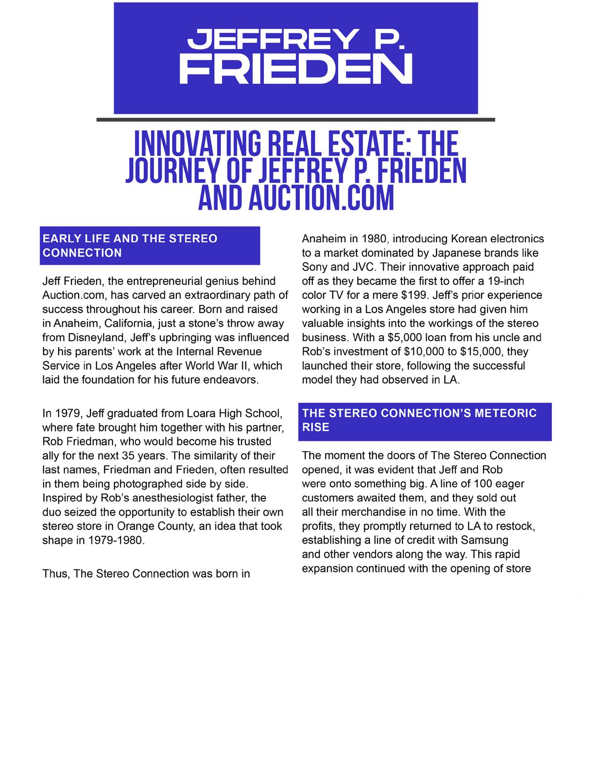 effrey Frieden shares his entrepreneurial journey and highlights the success of Ten-x and Auction.com in revolutionizing the Real Estate industry. The video also introduces Eric L. Frazier’s co-hosts,