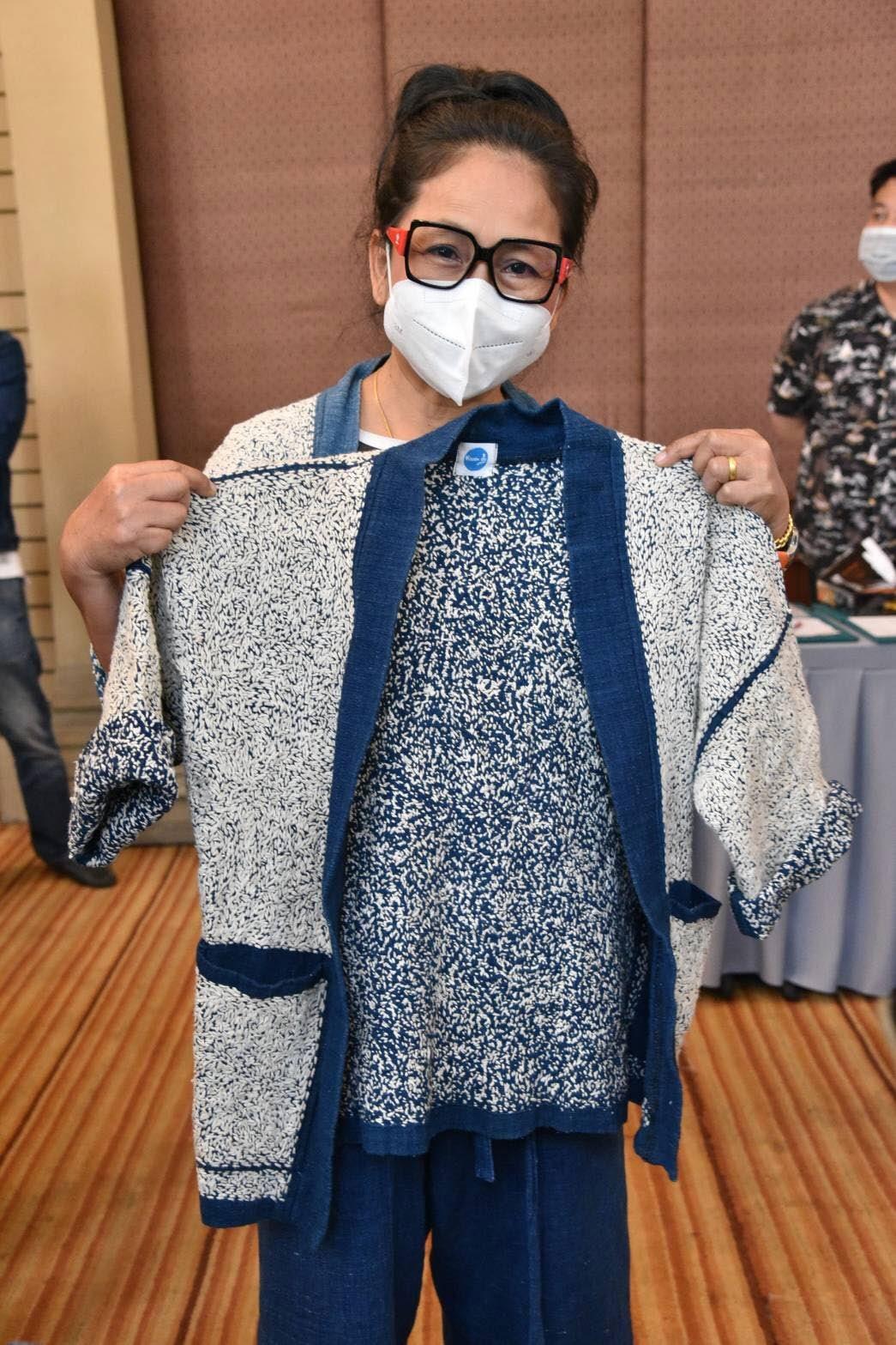 เอกสารเพื่อการคัดเลือก ผูสมัคร กลุม “ผูผลิตงานศิลปหัตถกรรม” ขอมูลผูผลิตงานศิลปหัตถกรรม (Portfolio) รหัสผูสมัคร กลุมผูสมัคร : ผูผลิตงานศิลปหัตถกรรมไทยทั่วไป (Vantage) ชื่อ-นามสกุล : นางสาว สุธิดา นาวาจะ ที่อยู : 415/30 ม.4 ต.หนองผึ้ง อ.สารภี จ.เชียงใหม ชื่อแบรนดหรือชื่อราน : ธิดา ดีไซน ประเภทงานผลิตภัณฑ : เครื่ องทอ มาตรฐาน, รางวัล หรือการรับรอง : มผช ผลิตภัณฑ : เสื้อผาสตรี ชุดสตรีสำเร็จรูป