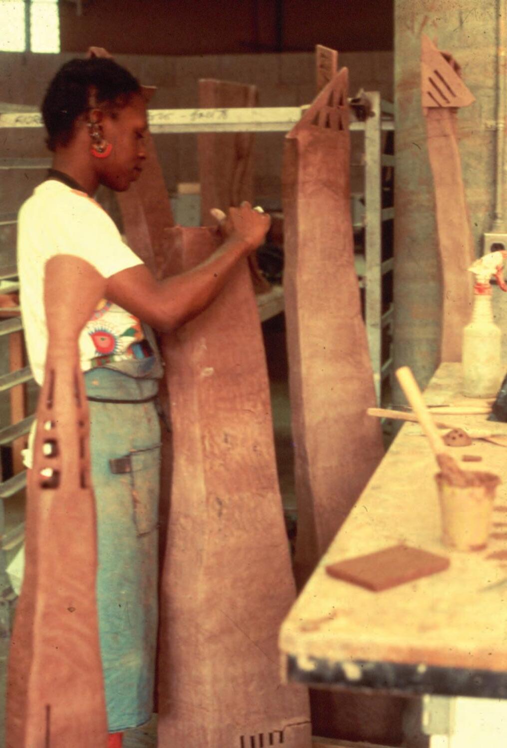 In her conversation with Janet Henry for Bomb Magazine, Sana noted that she “worked in clay everywhere.”1 That included China, Cambodia, West Africa, the Netherlands, wherever there are residencies and villages where she can land, connect, and do what