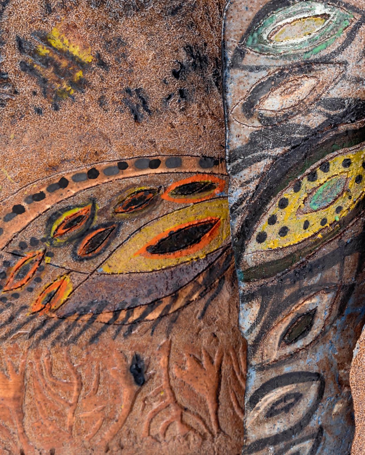 Raised Earth is a powerful introduction to an artist and her obsession with clay, with fire, with color, form, and desire. That it has taken many decades to bring this group together shows us her perseverance and how long it often takes the art world to truly recognize and see the power and innovative work of women artists, especially women artists of color. Can her works “protect” any of us? Only someone who possesses the work could say that. But we can marvel at the decades of thought, imagination, and skill it takes to create these pieces. Only the