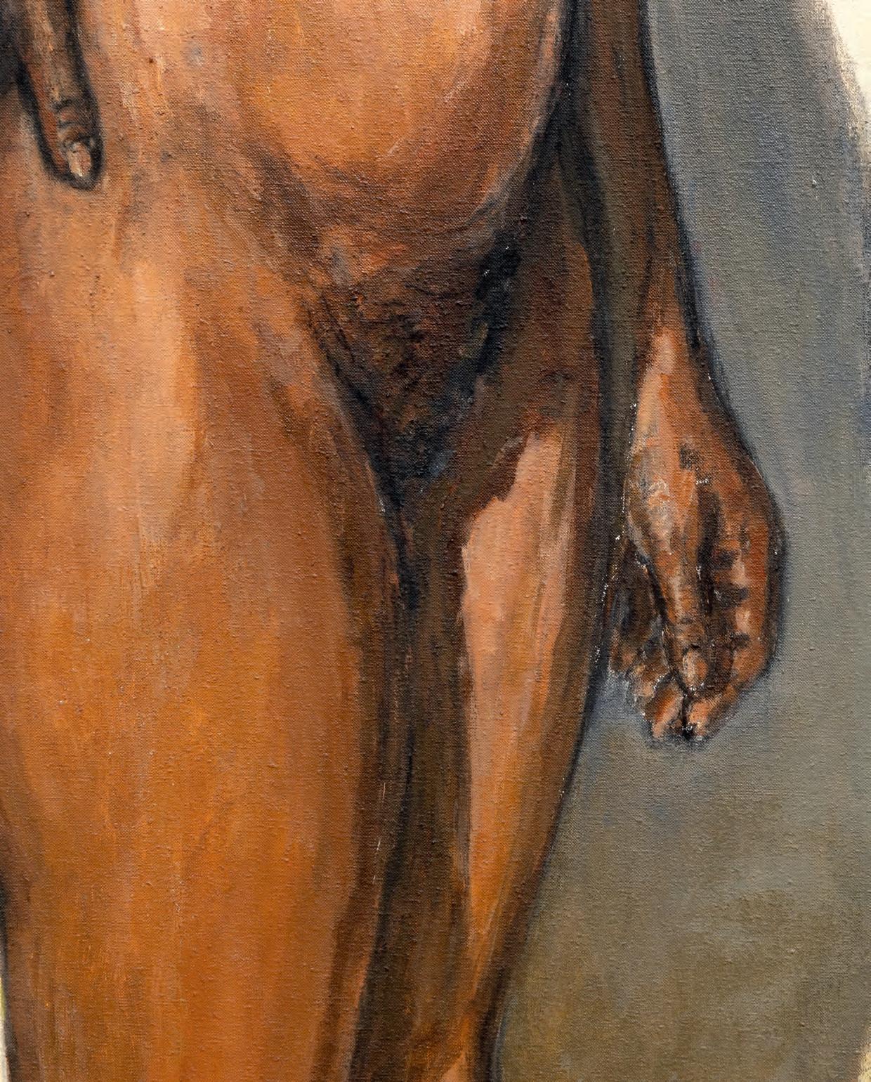 Over the next decade and half, Gorelick doggedly honed her technique, initially studying with Deckoff, who brought in models for her students to paint, then hiring her own models and working on her own. When she was interviewed by Dorothy Gees Seckler in 1968, Gorelick was at a critical juncture in terms of thinking about her work, moving from the “abstract” to the “specific,” from describing her paintings as primarily formal, as though the figure were merely another shape to be contoured and colored, to seeing her models as real people, with minds and personalities