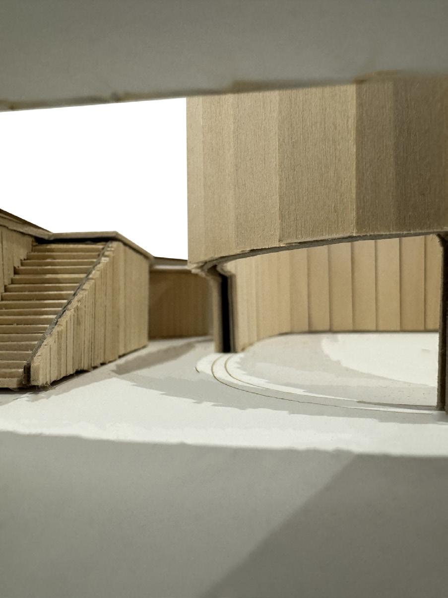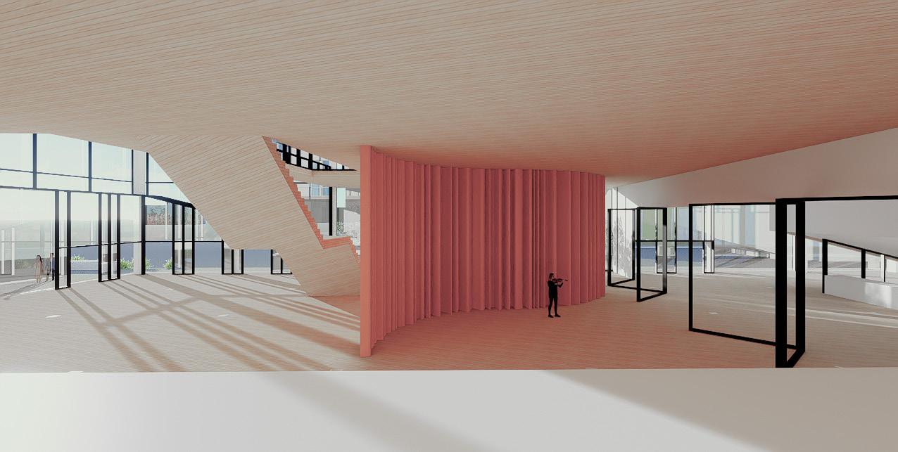 The Flowing Arts Theatre is a flexible performance space designed as the heart of the arts center. Its fluid architecture supports a wide range of performances while blurring the line between performer and audience. Adaptable and expressive, the building itself becomes part of the artistic experience, fostering creativity and energizing the community.
