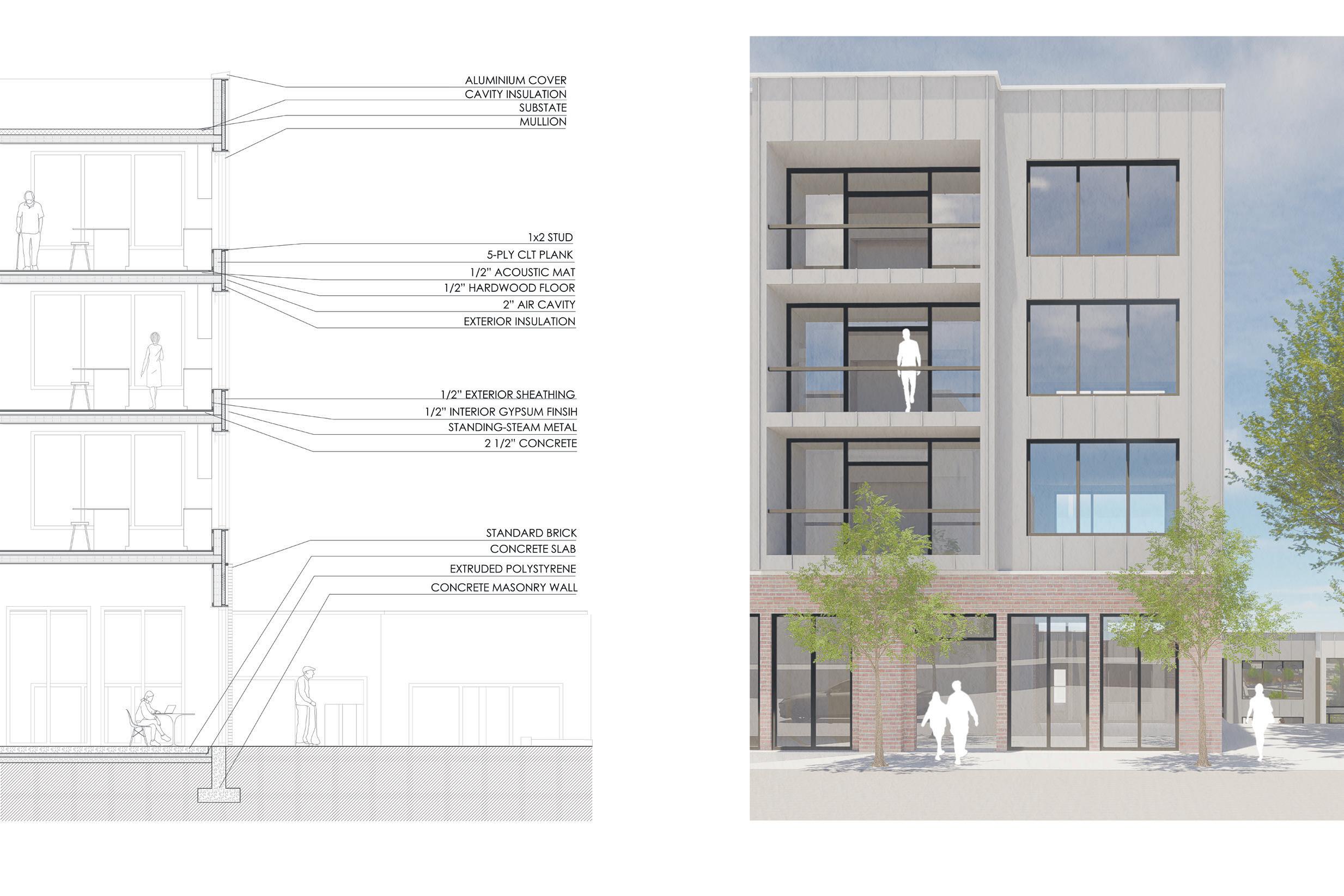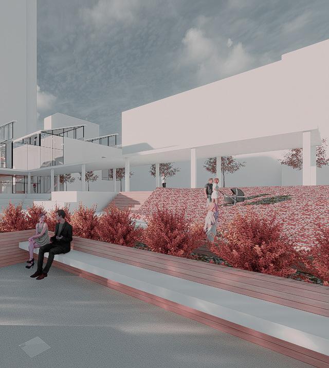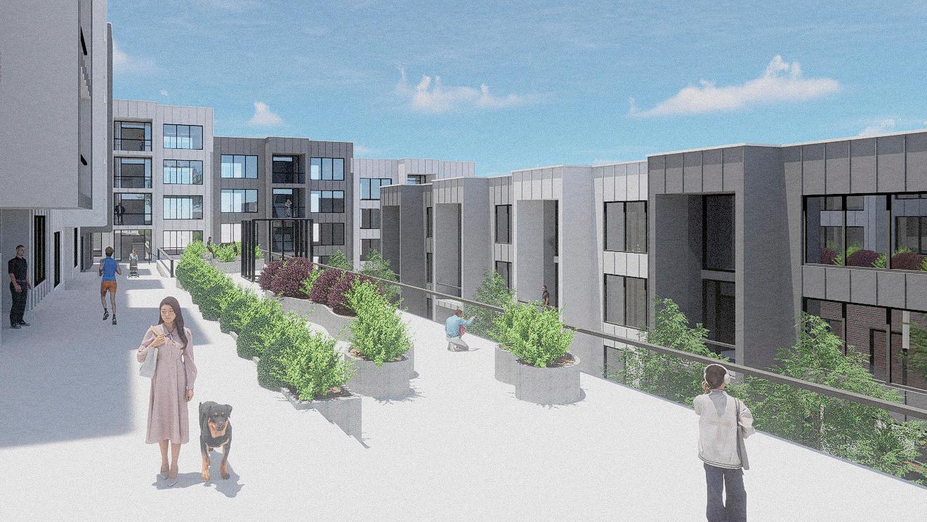 This project creates a vibrant, multi-layered community that reflects the energy of an urban village. By combining public spaces, shared amenities, diverse housing types, and commercial areas, the design encourages interaction between students, families, and the broader community. Views toward Mission Hill strengthen the connection to the surrounding context, while varied materials across buildings create a welcoming, human-scaled environment that fosters belonging.
