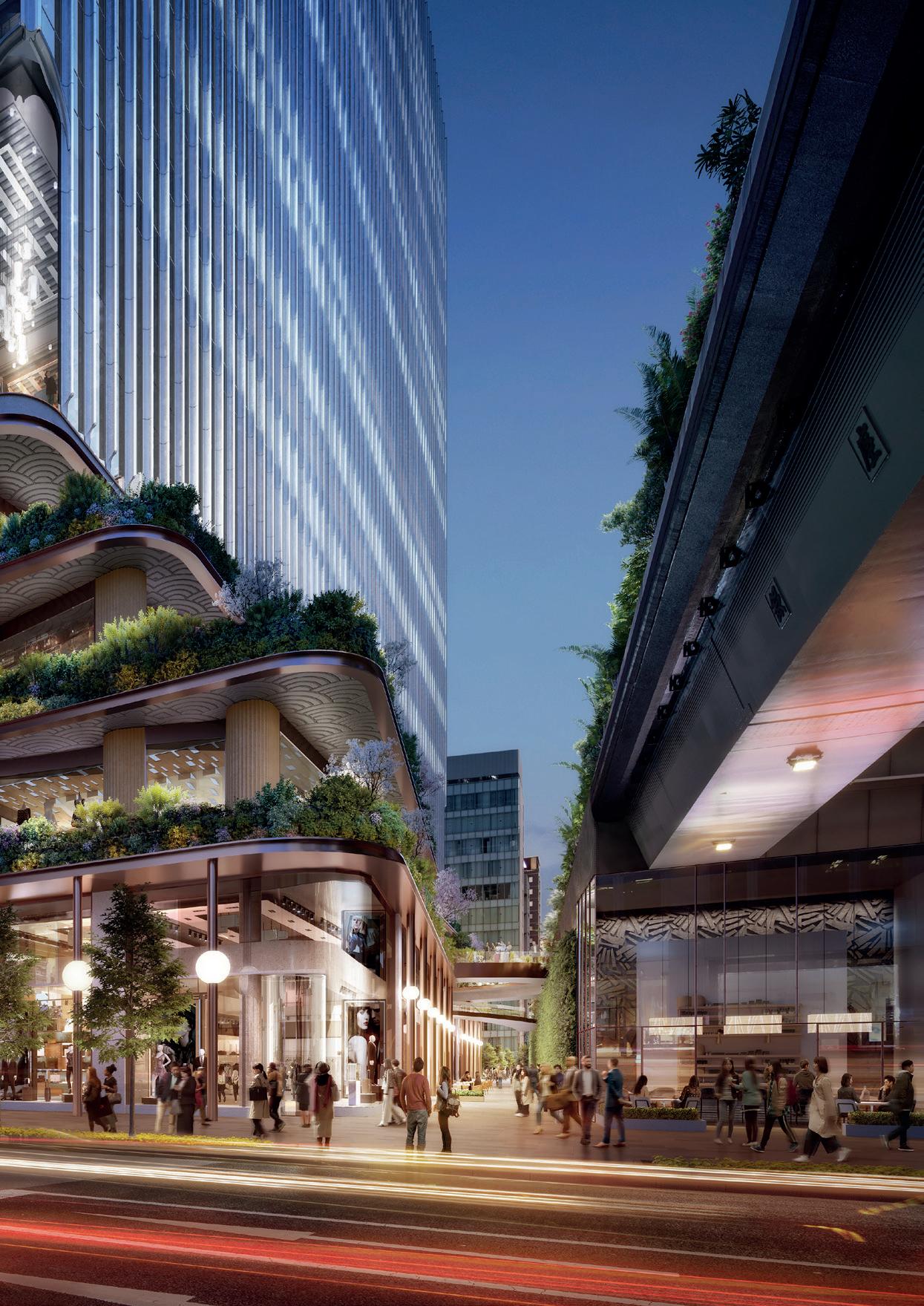 The designs, led by Eric Parry Architects will be delivered by Nihon Sekkei, and will construct a mixed-use development with a total floor area of 164,000 sqm, including 35 above-ground levels and 4 basement levels, with a maximum height of 180 meters.