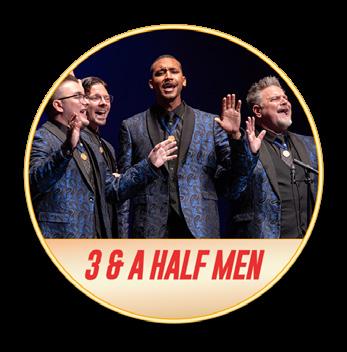 Three and a Half Men is a dynamic vocal quartet from Central Florida that brings a variety of musical styles to the scene. With backgrounds in barbershop, doo-wop, vocal jazz, and gospel music, the quartet enjoys a diverse repertoire and delivery. That said, Three and a Half Men is honored to be the 2024 Barbershop Harmony Society International Quartet Champions and 2023 Sunshine District Champions. Always looking for ways to enjoy harmony, the group is thrilled to have the opportunity to share its music any chance they get. From their name, you might wonder where the other ‘half’ went. Don’t worry, they are wondering the same thing!