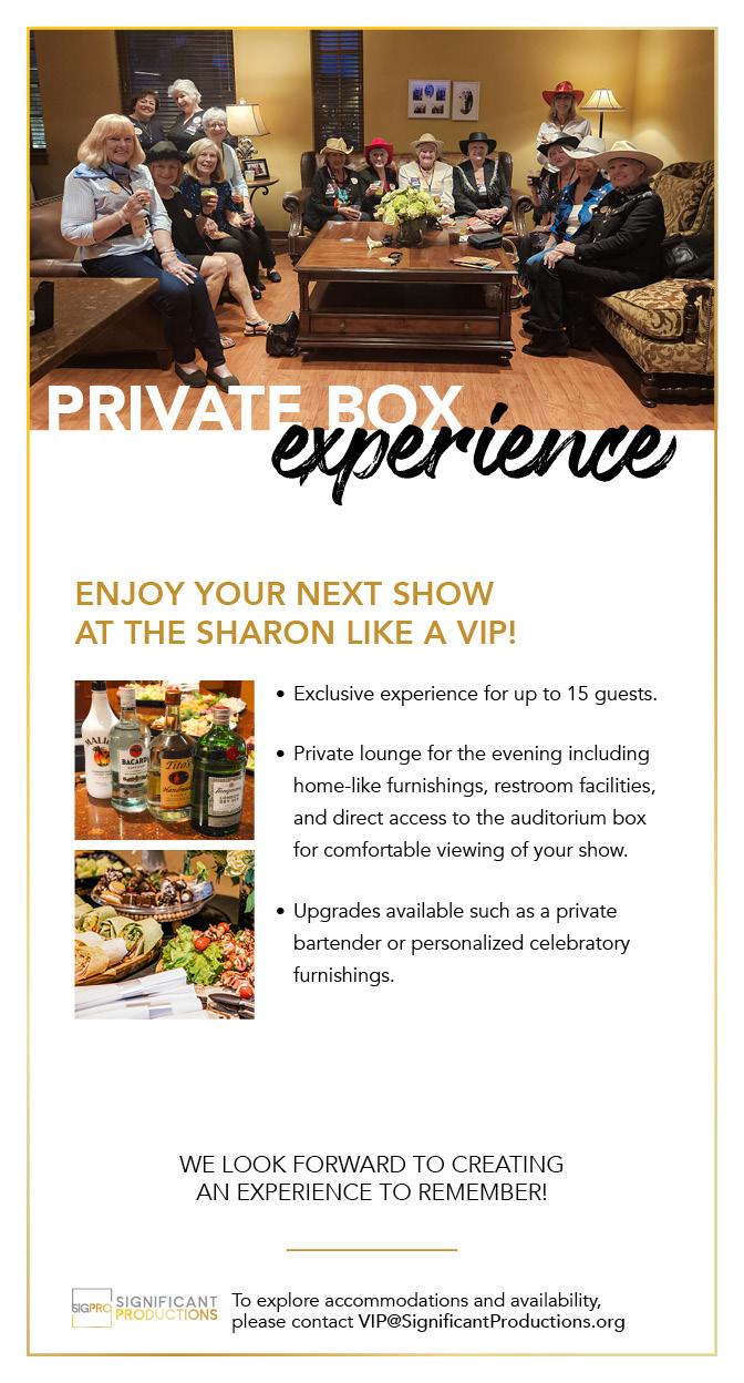 Significant Productions is a registered 501(c)(3) nonprofit public charity that operates The Sharon L. Morse Performing Arts Center (The Sharon) and The Studio Theatre Tierra del Sol (The Studio).
