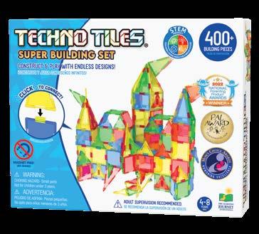 It’s never too early to start developing kids’ creativity and the Techno Tiles Sets are a great place to start. Basic shapes can turn into grand masterpieces. Simply connect the shaped tiles with the snap-on two-way and four-way connectors and watch your structures come to life. From rockets to castles, vehicles, and abstract structures, Techno Tiles puts no limit on your imagination. These sets include 240 to over 400 pieces including squares, small triangles, large triangles, two-way connectors, and four-way connectors. Techno Tiles are a great tool to learn about basic geometry, construction, engineering, and architecture. This product aligns with and supports STEM (Science, Technology, Engineering, and Math standards). Ages 4-8 years.