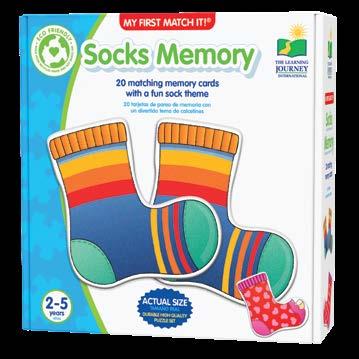 Learn about colors and patterns as you match these fun sock cards. My First Match It! - Sock Memory includes 20 matching memory cards. Ages 2+ years.