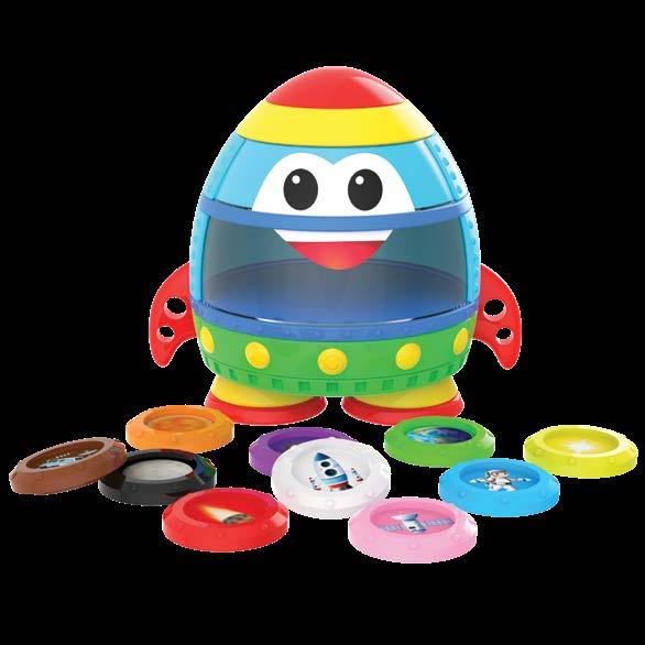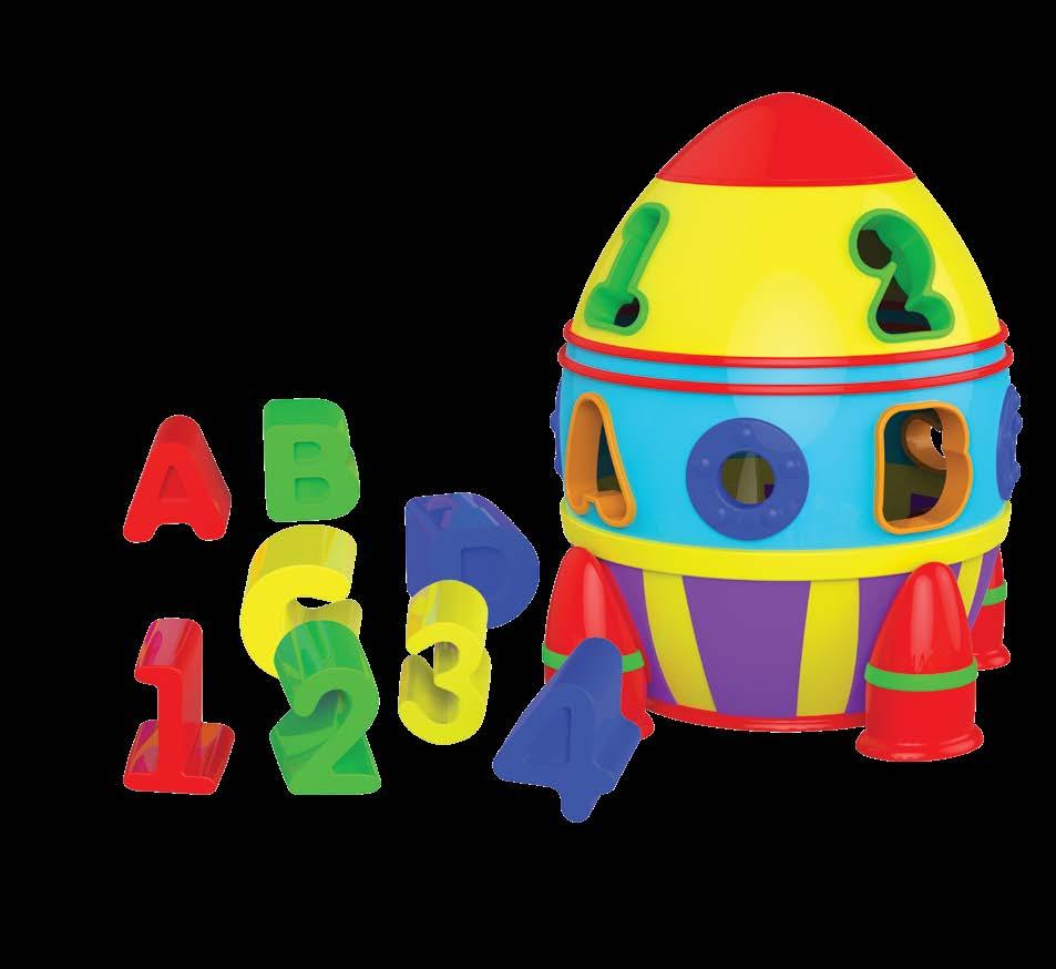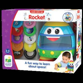 Babies and toddlers will have a blast with the Rocket Shape Sorter. With the ABC and 123 cut outs on the top and sides, your little one will get lots of practice with the alphabet and numbers and where they fit. The shapes also conveniently store inside the unit. Ages 1-3 years.