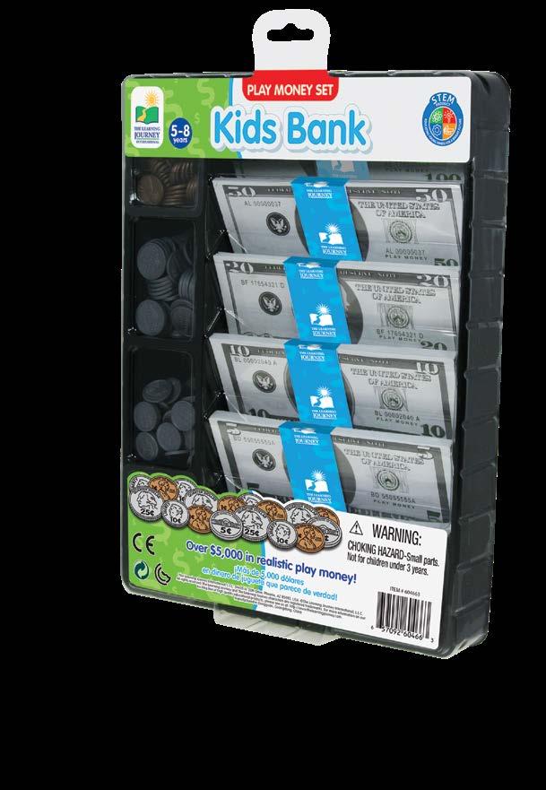 This “stash of cash” contains more than $5,000 in realistic play money. Kids can sharpen their counting and mathematic skills as they play. The money conveniently stores in the reusable plastic storage tray. Ages 5-8 years.