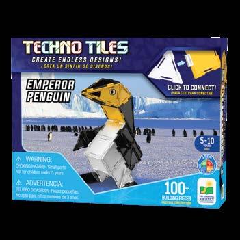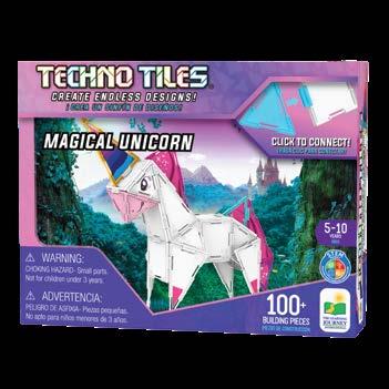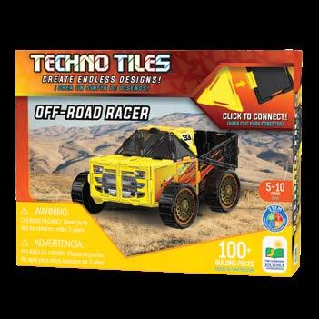 Turn basic shapes into grand masterpieces with these new Techno Tiles themed sets. Simply connect the shaped tiles with the snapon two-way and four-way connectors and watch your structures come to life! These 100+ piece sets include squares, small triangles, large triangles, two-way connectors, four-way connectors, and accessories like stickers and wheels to escalate your build to the next level! Techno Tiles are a great tool to learn about basic geometry, construction, engineering, and architecture! These products align with and support STEM (Science, Technology, Engineering, and Math standards). Ages 5-10 years.