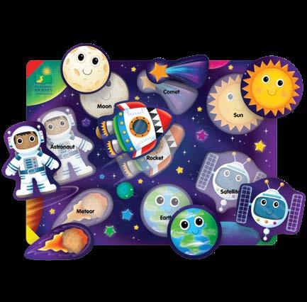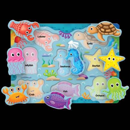 These fun and colorful tray puzzles feature arctic, jungle, farm, sea animals, dinosaurs and space objects. Children will be encouraged to develop different skill sets that will help get them ready for school. Pictures are also printed under the pieces to guide younger children. Each puzzle measures 15” x 11” (38.1cm x 27.94cm). Ages 2-5 years.