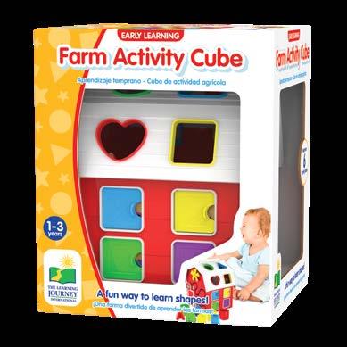 Little farmer babies and toddlers will have fun exploring all the exciting activities on the Farm Activity Cube. Watch their surprise when they open little doors, tickle little rings, spin colorful gears, fit the letters into the sorter, and much more. This cute red barnshaped sorter will help develop tactile motor and cognitive skills ‘til the cows come home! Ages 1-3 years.