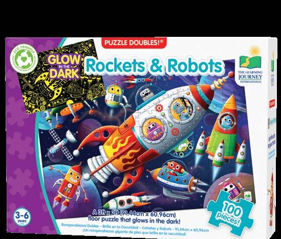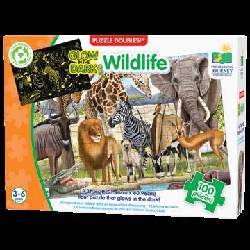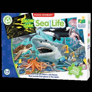 Learning about nature, space and other environments has never been so much fun! After putting together the 100 piece puzzle, turn off the lights and see a surprise as it glows in the dark! Puzzle Doubles! Glow in the Dark puzzles are a fun way to expand your knowledge of different environments. Each puzzle measures a giant 3’ x 2’ (91.44cm x 60.96cm)! Ages 3-6 years.