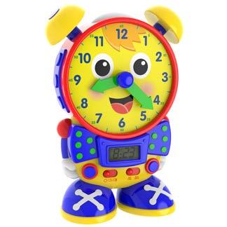 This newly updated version of Telly the Teaching Time Clock teaches kids to tell both analog and digital time using independently moving hands and two quiz modes. In the learning mode, Telly teaches time in five minute increments by moving the hands and updating the LCD screen. In the quiz mode, Telly asks your child to move the hands on its face to match the time displayed on its screen. Telly also functions as a real working clock, alarm clock, and night light. Learning to tell time has never been so much fun! Requires three “AA” batteries (included). Ages 3+ years.