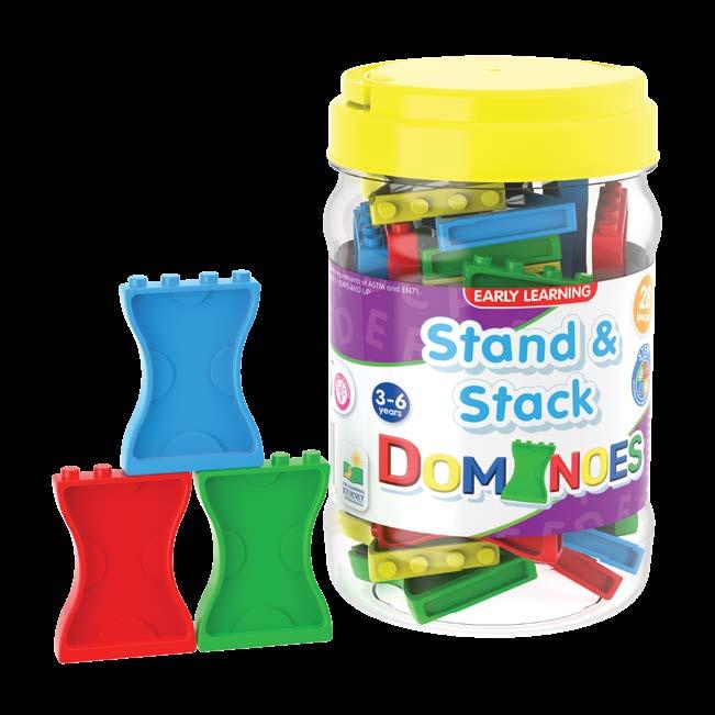 Design, build, knock down, and amaze! with the Stand & Stack Dominoes. Kids will have a ton of hands on fun with the set that includes 28 multi-colored dominoes specially designed to stack on top of one another. Sort, stack, line up and watch them tumble down in chain reactions - whatever your option is the Stand & Stack Dominoes are ready for creative learning fun! Ages 3-6 years.