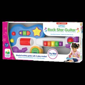 Your little ones will be “jazzed up” by this Little Rock Star Guitar. With multiple play modes and activities, musical talents will be inspired. Little Rock Star Guitar features three groups of music, three play modes, five light up musical buttons, whammy bar, drum button, and more! The fun music and sound effects will have your little one rockin’ for hours. Requires three “AA” batteries (included). Ages 1-3 years.