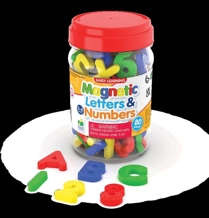 Help your little learner master their alphabet and number skills with this jar full of letters and numbers. Early Learning Magnetic Letters and Numbers come with endless possibilities for learning. Encourage your kids to use the magnetized letters and numbers to create their favorite words or even early math equations. Includes upper and lower-case alphabet letters (including two sets of upperand-lower case vowels), numbers 0-9, and math symbols. 80 pieces in total. Upper case letters measure 1.25” tall, lower case letters measure 1” tall. Ages 3-6 years.