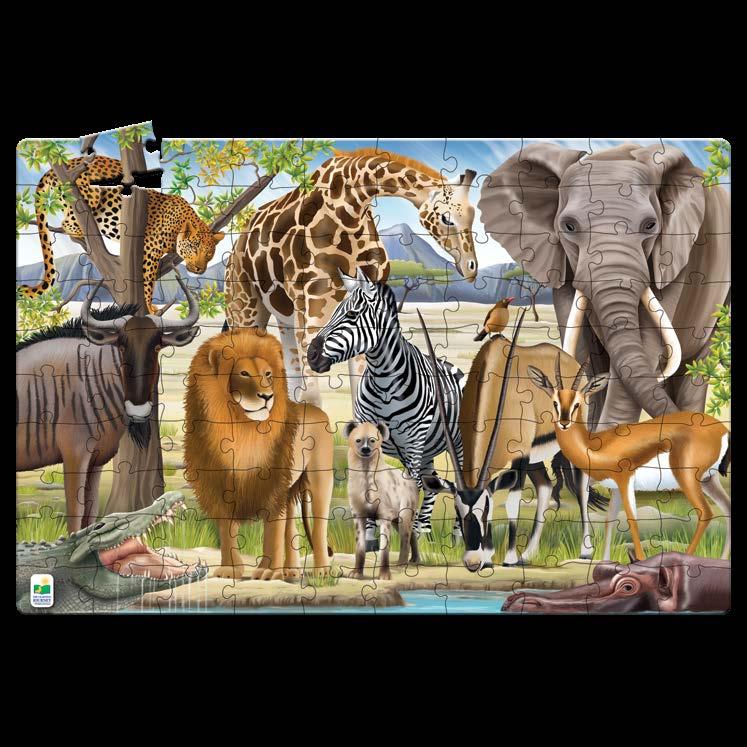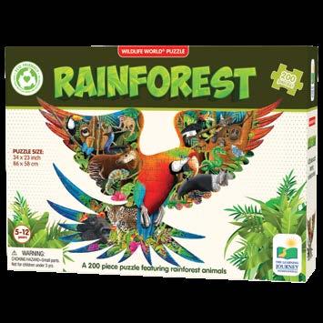 The Wildlife World Puzzle Series by The Learning Journey takes learning about Wildlife to a new level. These unique puzzles, both in shape and content, will have kids learning about natural habitats and more. These 200-piece puzzles will help develop problem solving skills, spike interest, and expand knowledge of different environments. The colors and patterns of the animals are beautiful and fascinating! These puzzles measure approximately 3’ x 2’ (91.44cm x 60.96cm)! Eco Friendly design is made from recycled paper. Ages 5-12 years.