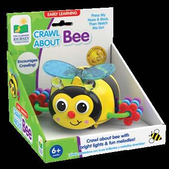Your little one will wiggle, creep, and inch along as they follow these adorable little creatures. The Crawl About Crab, Turtle, Bee, Butterfly, and Lady Bug will have your little one crawling in no time! The early learning Crawl Abouts wobble and wiggle as they move across the floor with their fun nursery rhyme melodies and bright colorful lights. A simple push on the back sets them in motion. Your little ones will be mesmerized to discover the magic of movement. Requires two “AAA” batteries (included). Ages 6 months - 3 years.