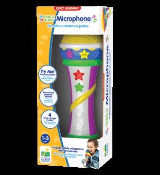 Your little ones can play “Pop Star” with this Sing-A-Long Microphone. With multiple play modes and activities, musical performance talents will be inspired. Sing-A-Long Microphone features six melodies, voice changer modes, record mode, playback, and more! The fun music and sound effects will have your little one ready for their next talent show! Requires three “AAA” batteries (included). Ages 1-3 years.