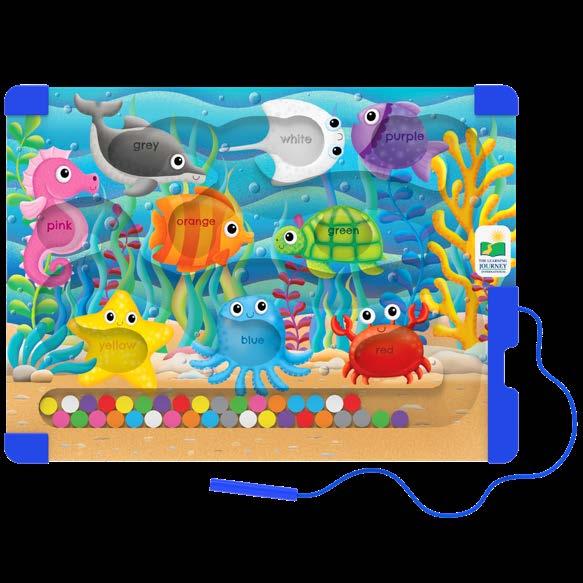 Learn the basic colors by using your magnetic pen and placing all the corresponding-colored magnetic pieces to their proper color bins.