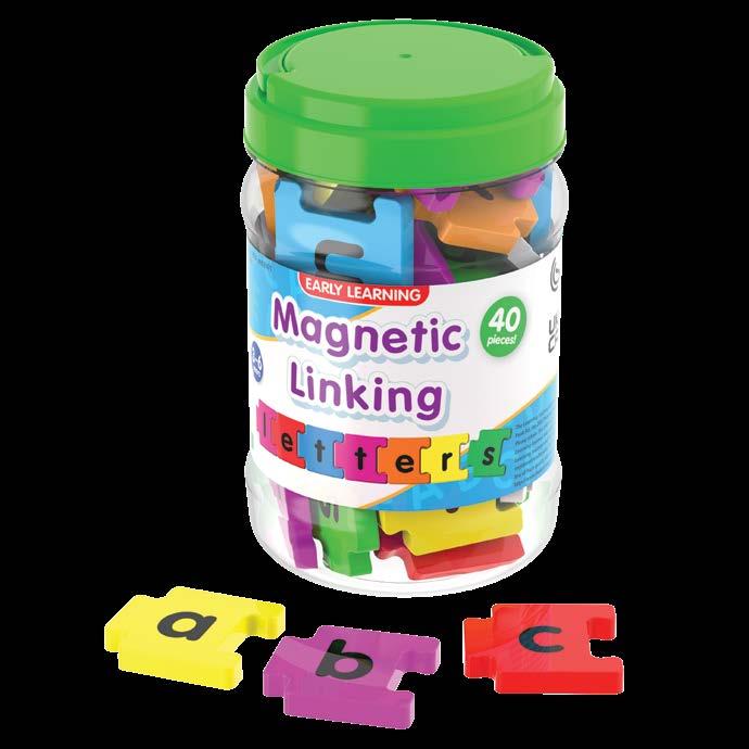Link and learn your alphabet and first words together using this jar full of magnetic linking letters. Magnetic Linking Letters come with endless spelling possibilities for creative learning. Encourage your kids to use the magnetized tiles to learn their alphabet and create their favorite words. Includes 40 magnetic lower case letters (including multiple sets of those popular letters). Ages 3-6 years.