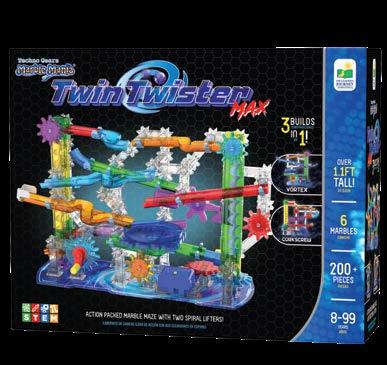 200+ pieces with dual corkscrew lifters and two additional base boards for additional builds. Requires two “AA” batteries (not included).