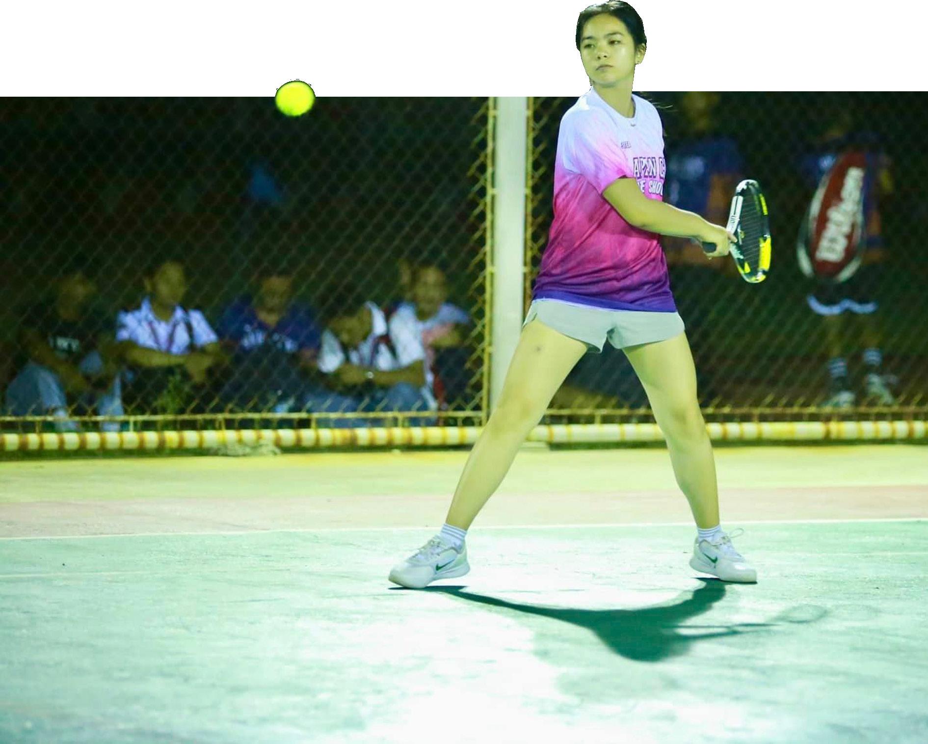 Ina Sofia Suzara’s return to the tennis court after a 4-year hiatus proved fruitful as she triumphed in a closely contested finals match against Sam Hernandez of DWCC with a 5-4 set score line in the Calapan City Athletic Meet.