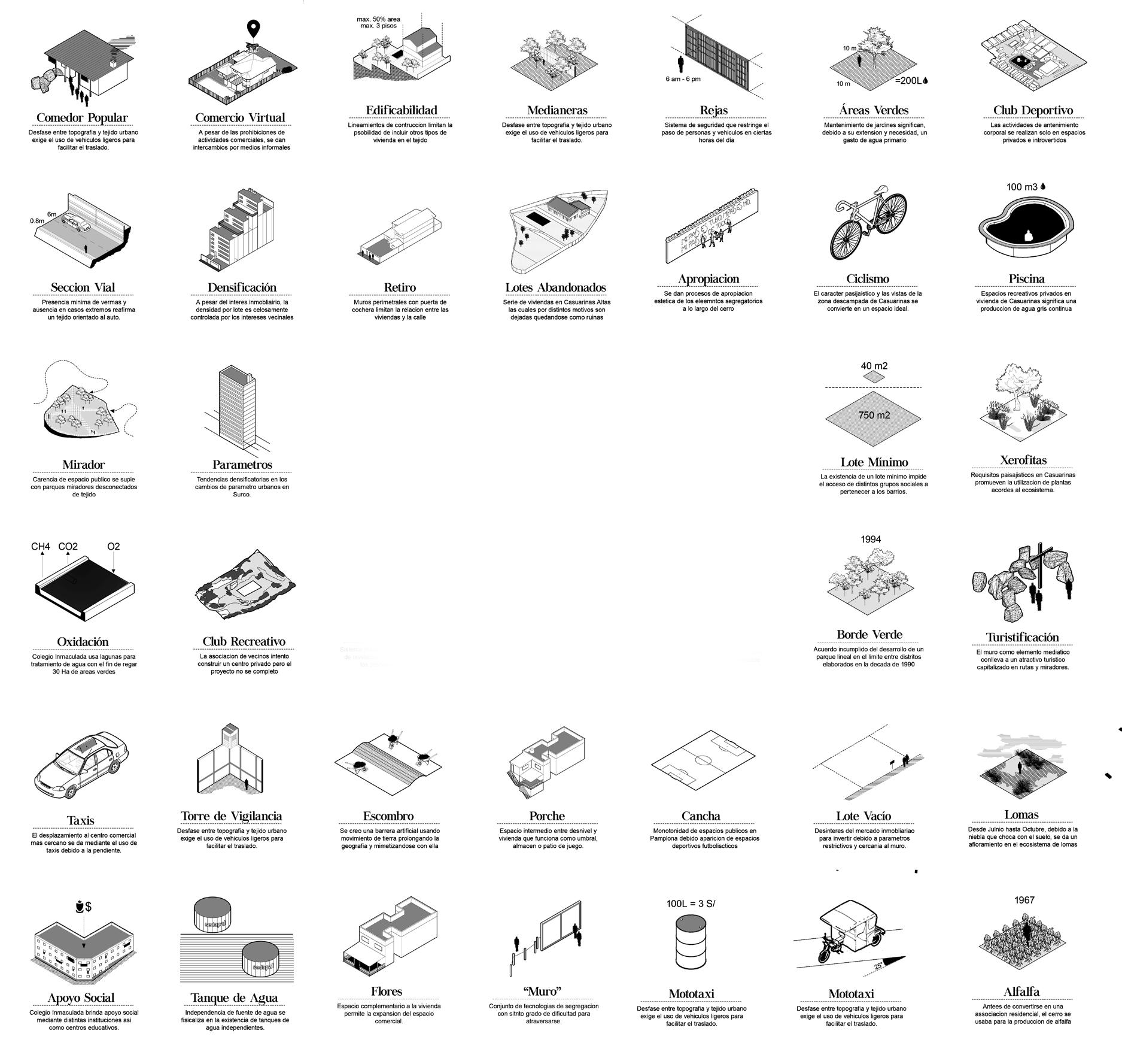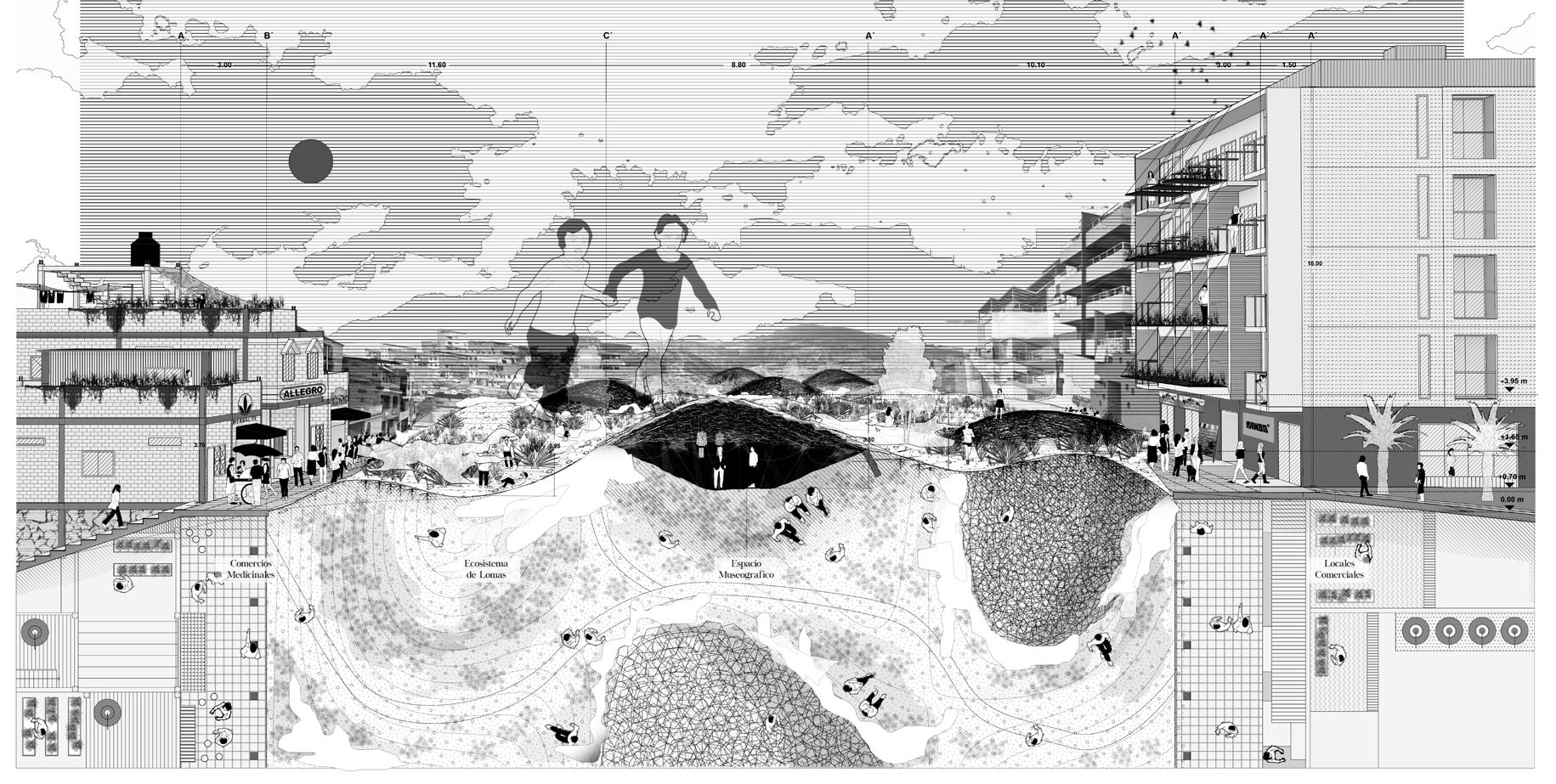 The boundary is deprogramming and walls, fences, and other manifestations are symptoms that seek the unattainable perpetuity of this situation. In response, the programming device pursues a multiscalar and exploratory re- view of the boundary as a theoretical tool and its projective potential. To this end, one of Lima’s urban barriers with the greatest sym- bolic char- ge is taken as a case study: the boundary be- tween San Juan de Miraflores and Santiago de Surco, nicknamed the “Wall of Shame.”
