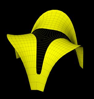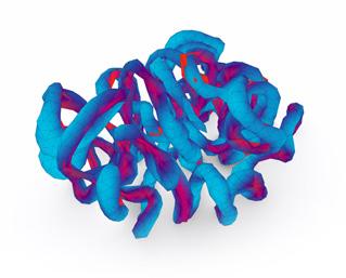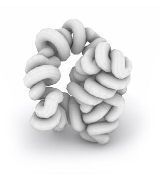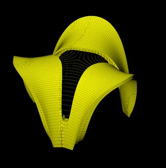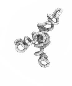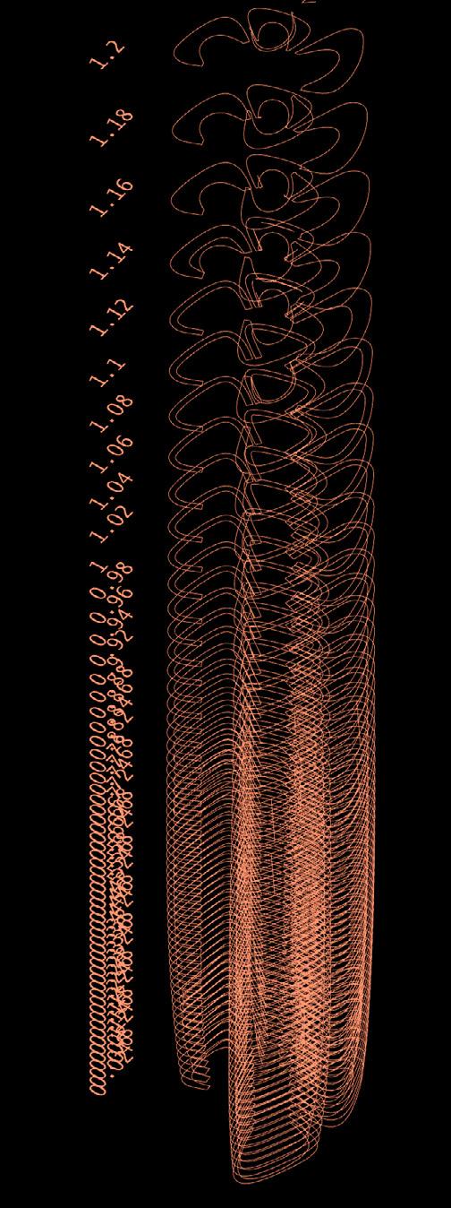 Digital Eirelson. esthetic similarity patterns were identified between the emergent behaviors of differential growth, a process observed in nature that generates complex organic forms through local variations in expansion rates, and the work of the Peruvian artist Jorge Eduardo Eielson (1924–2006). This connection, grounded in formal affinities between material tension and textile torsion, enabled a digital extension of his formal experiments inspired by Andean knots and textiles, particularly his contemporary reinterpretations of the pre-Columbian quipu as a communicative and recording system through “talking knots.”