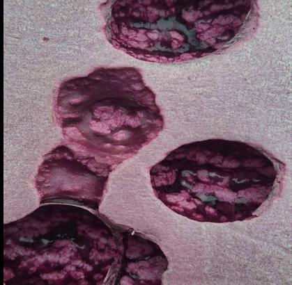 The machine replaces the head of a typical subtractive manufacturing machine with a plunger that de- posits drops of thinner onto foam, leaving a sometimes inadvertent and unpredictable trail that allows editing the surface and eroding it in a controlled manner. This is achieved through a bowden push system driven by a Servomotor that presses a 10 ml syringe, allowing the liquid to be dosed. In a future update, it would be ideal to improve the programming quality to be able to play with parameters.