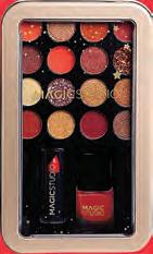 Makillaje set praktikoa, 16 itzal, ezpainetako barra bat eta azazkaletarako esmalte bat dituena tonu gorrietan.