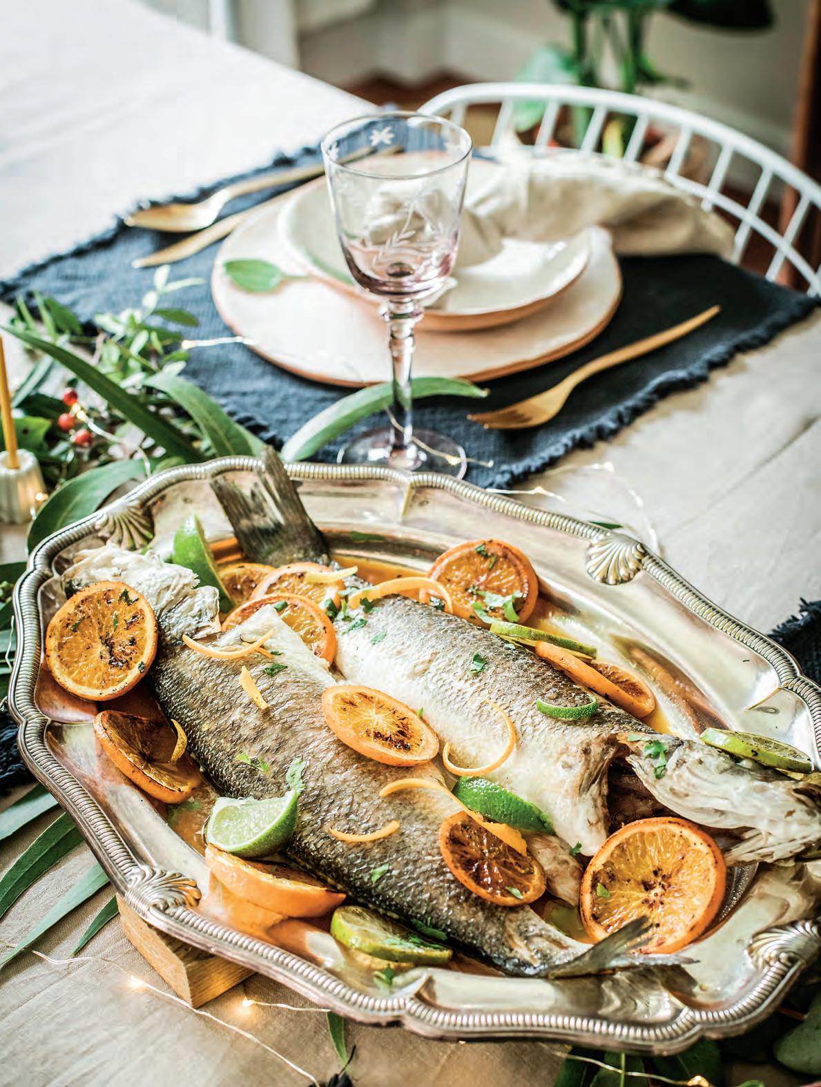 Zerbitzatzeko garaian, aurkeztu lupiak erretilu batean saltsarekin, labean egindako zitriko xerrekin, eta zabaldu gainetik martorri edo perrexil xehatua eta lima eta laranja birrina.