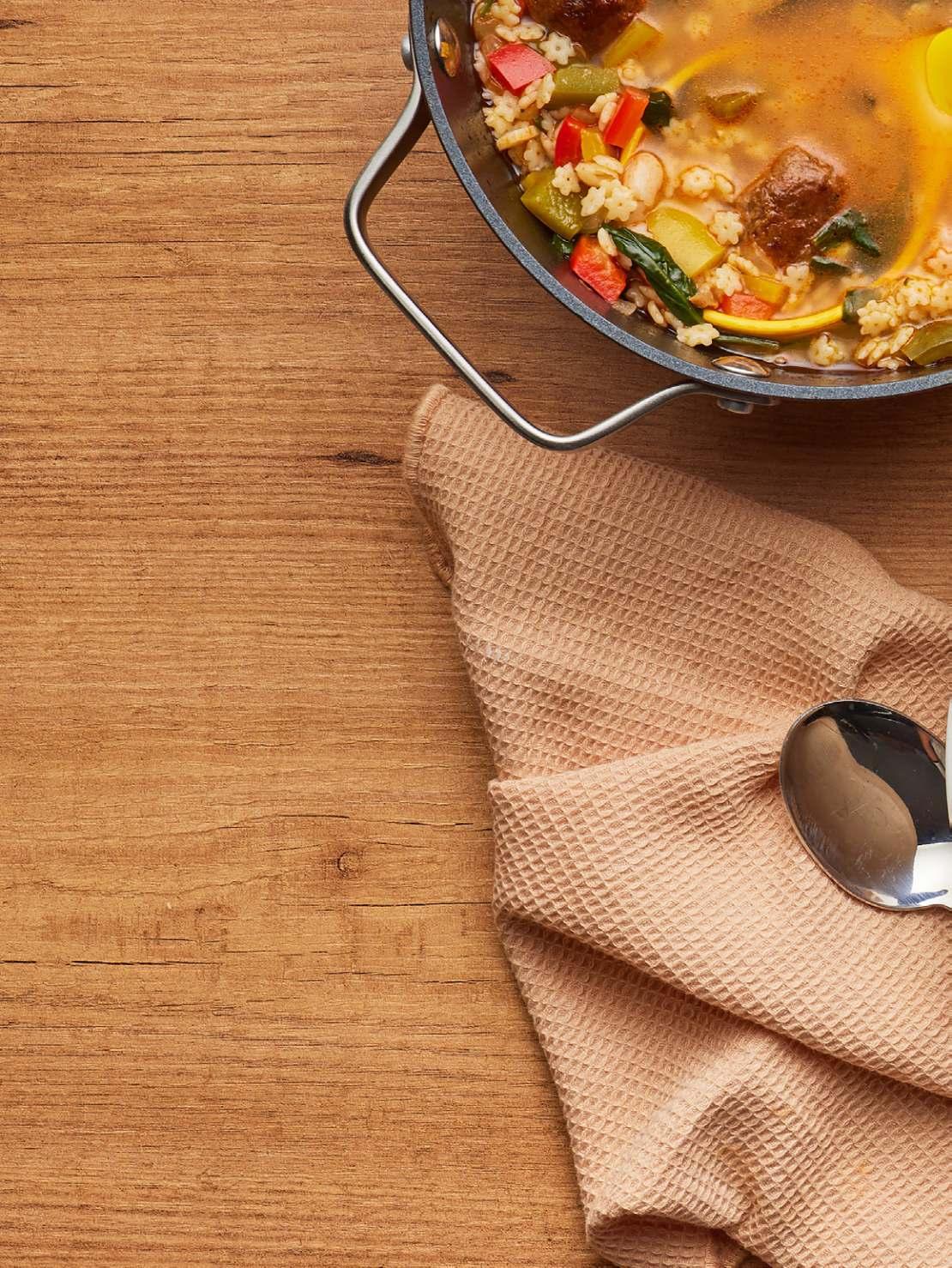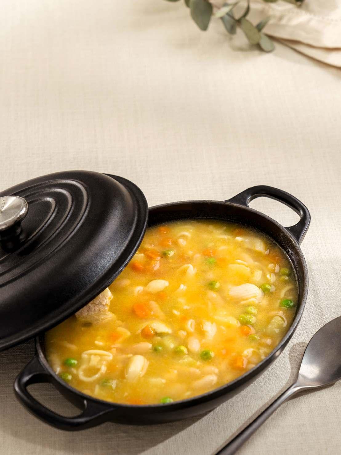 Passat aquest temps, ho cobrim tot amb el brou de verdures i ho salpebrem. Quan arrenqui el bull, hi afegim les estrelletes i les coem el temps indicat a l’envàs.