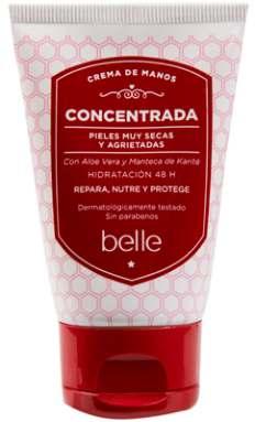 CONCENTRADA belle Crema d’acció intensiva que aporta una protecció extra per a les pells molt seques. Amb glicerina vegetal al 30% i mantega de karité, per a una acció reparadora en profunditat, que redueix i evita l’aparició de clivelles. També conté extracte d’àloe vera i al·lantoïna, per a alleujar la sequedat i la tibantor de les mans clivellades. La seva fórmula aporta 48 hores d’hidratació alhora que repara, nodreix, alleuja i protegeix. L’envàs és perfecte per dur-lo a la bossa o al necesser.