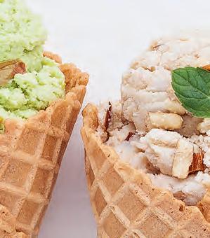 • Aderezos: maíz dulce, semillas de granada, albahaca, hojas de menta, pistachos, aceite de oliva virgen extra