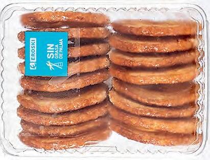 Crocantes e sen aceite de palma. Os novos lazos e palmeiriñas EROSKI elaboráronse con ingredientes coidadosamente seleccionados. Contan cun novo follado de gran calidade, que se elabora con longos repousos, o que permite acadar unha textura excepcional.