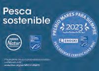 O novo bacallau EROSKI NATUR está no seu punto de sal. Capturouse nas xélidas augas do Mar de Noruega e no Atlántico Nordés e fileteouse e conxelouse decontado para manter a súa calidade intacta ata chegar ao teu prato. Ademais, conta co selo azul de MSC, que garante que realizaches unha elección positiva en apoio de pesqueiras ben xestionadas e sostibles.