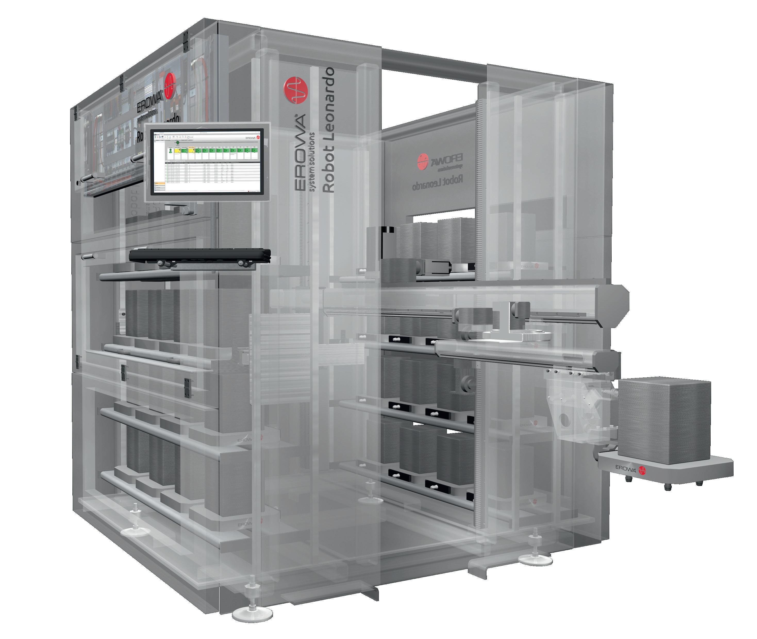 32 pallet UPC (320x320 mm) trovano posto sugli appena 4m2 di superficie di ingombro di Leonardo. Grazie alla stazione di carico integrata si può evitare anche una postazione di attrezzaggio esterna.