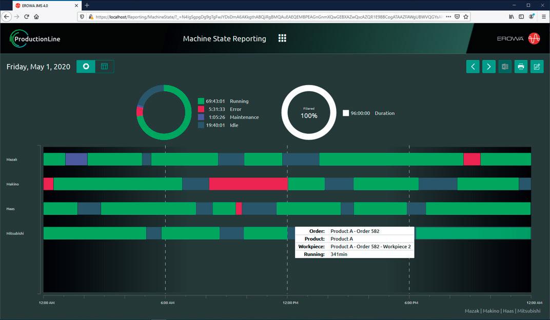 Il sistema di gestione del processo EROWA JMS 4.0 offre le basi per l‘incremento del tempo macchina effettivo. Tramite il collegamento di tutti i dati e il comando del processo di produzione completo i processi vengono accelerati riducendo al minimo i possibili errori umani.