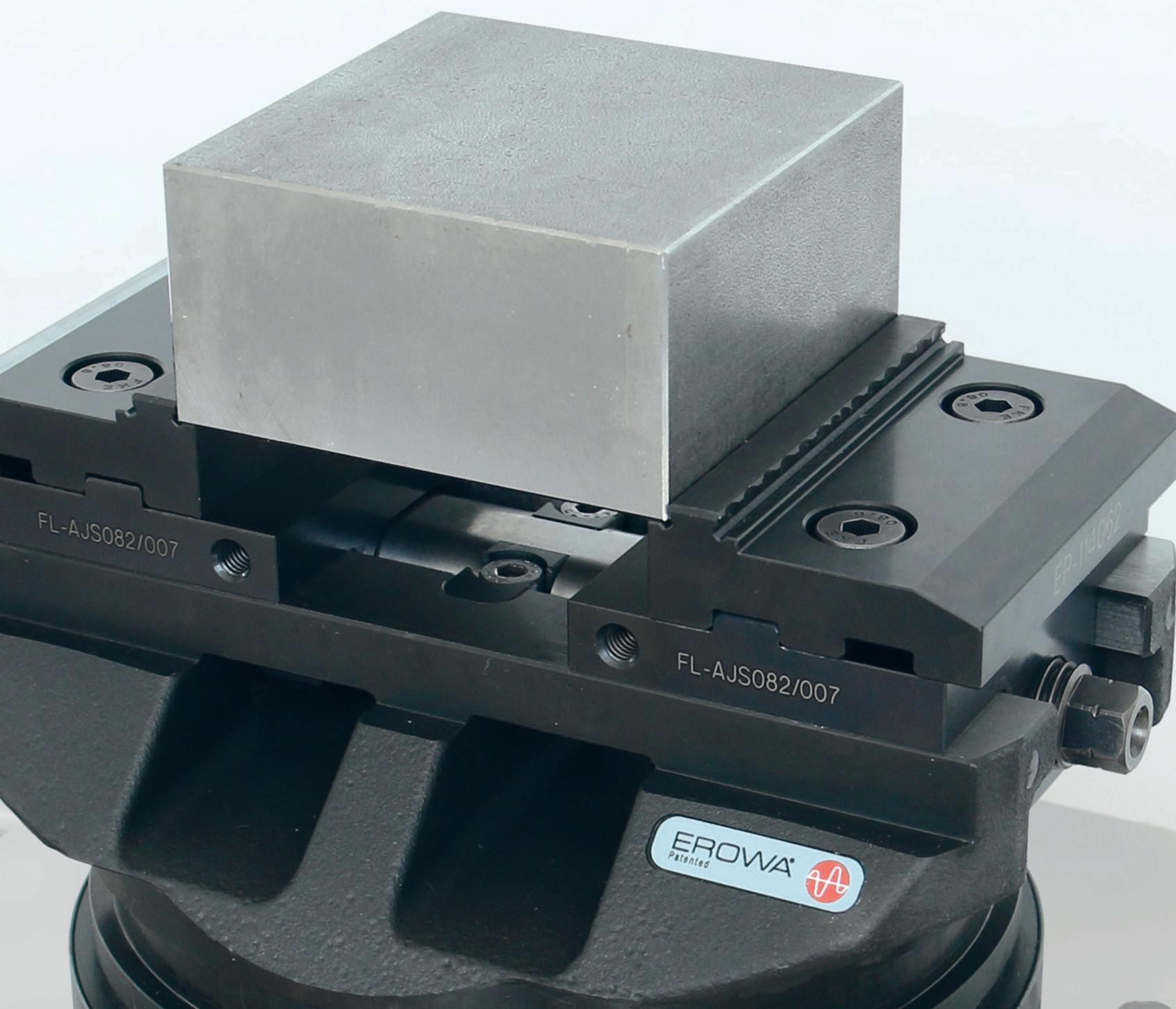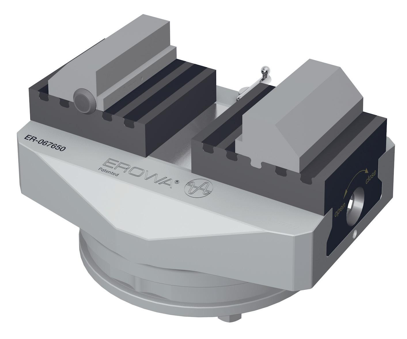 With the EROWA blank vise, workpieces are securely clamped with high clamping power at minimum height. The vise features a very compact and robust, but nevertheless light design.