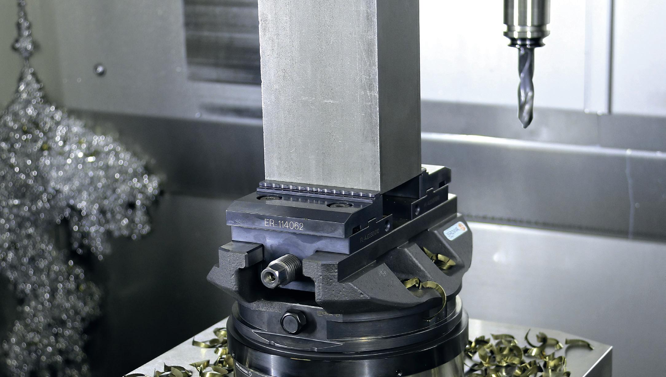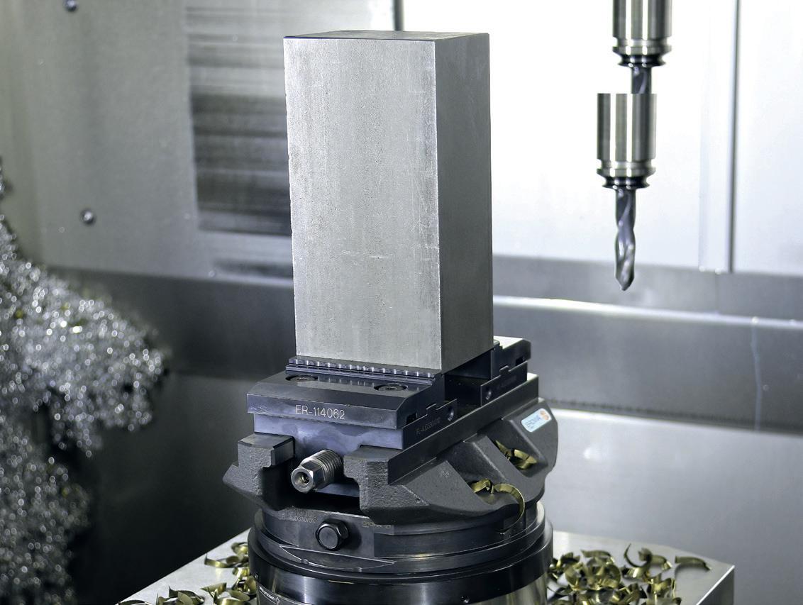 As a workpiece carrier, the blank vise offers the machine tool ideal accessibility to the workpiece. With only 100 mm height, there is plenty of machining space left – even for larger workpieces and on small machines.