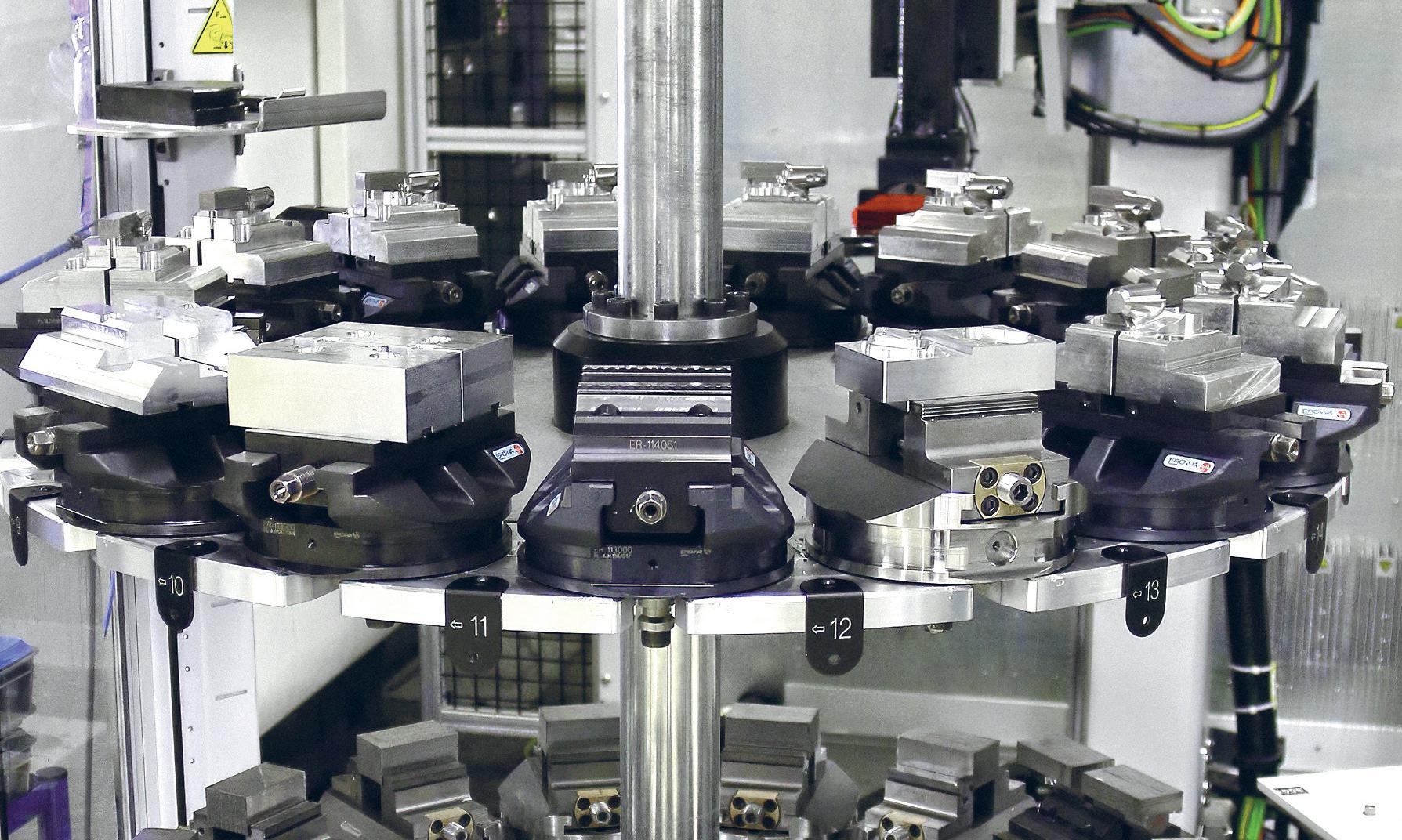 Equipped blank vices loaded in the robot magazine. Blank vises can be automatedthe proportion of productive hours on the machine tool is significantly increased.