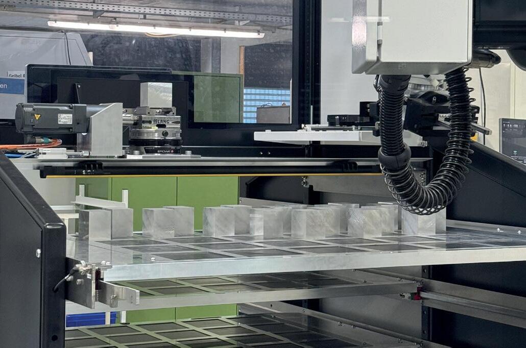 Chargement et serrage fiables des pièces brutes : Les pièces non palettisées peuvent être acheminées vers le système d‘automatisation de manière simple et ergonomique grâce à des tiroirs coulissants. Les pièces brutes non palettisées sont ainsi saisies en toute sécurité, préparées automatiquement pour la production et acheminées de manière fiable vers l‘usinage.
