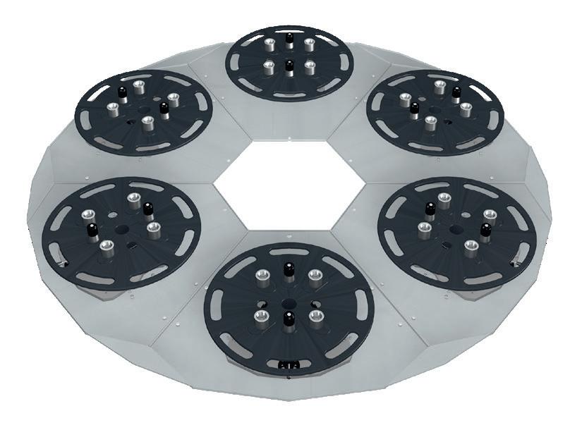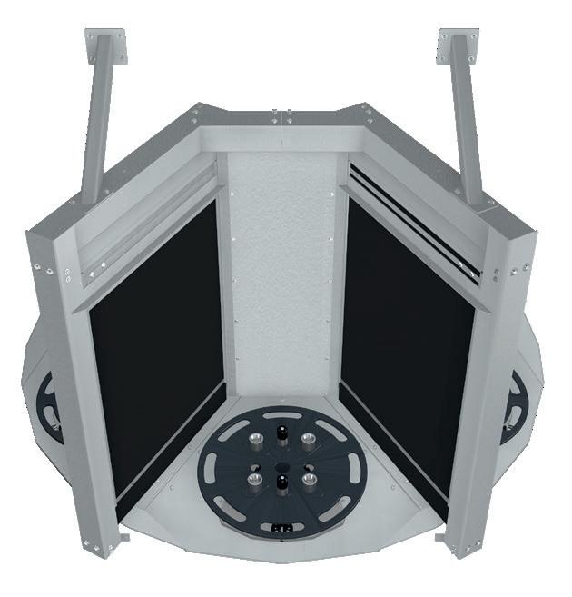 Loading/unloading process with open magazine door Optional rotary frame with roller blind in 6-fold design Optional central liquid collection point